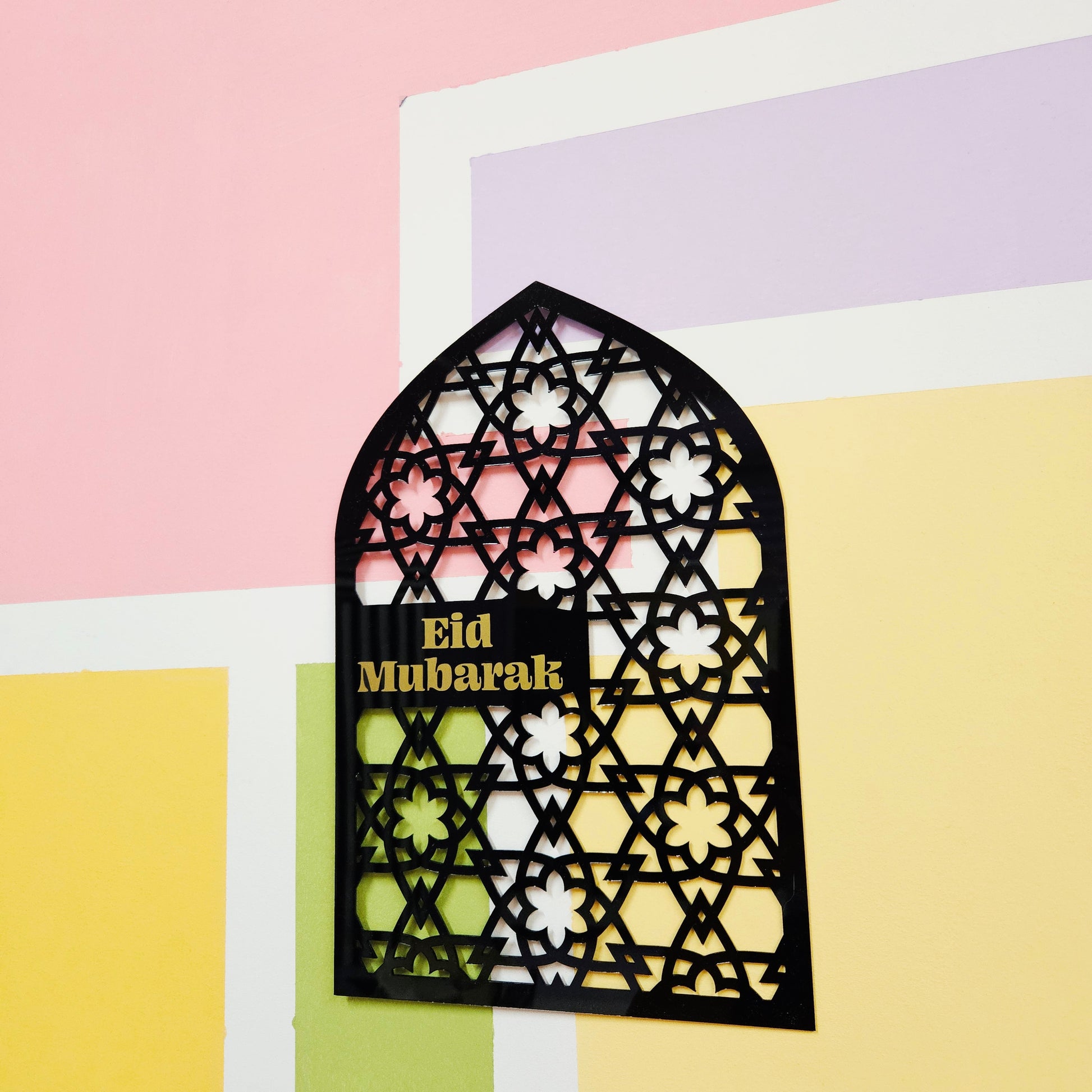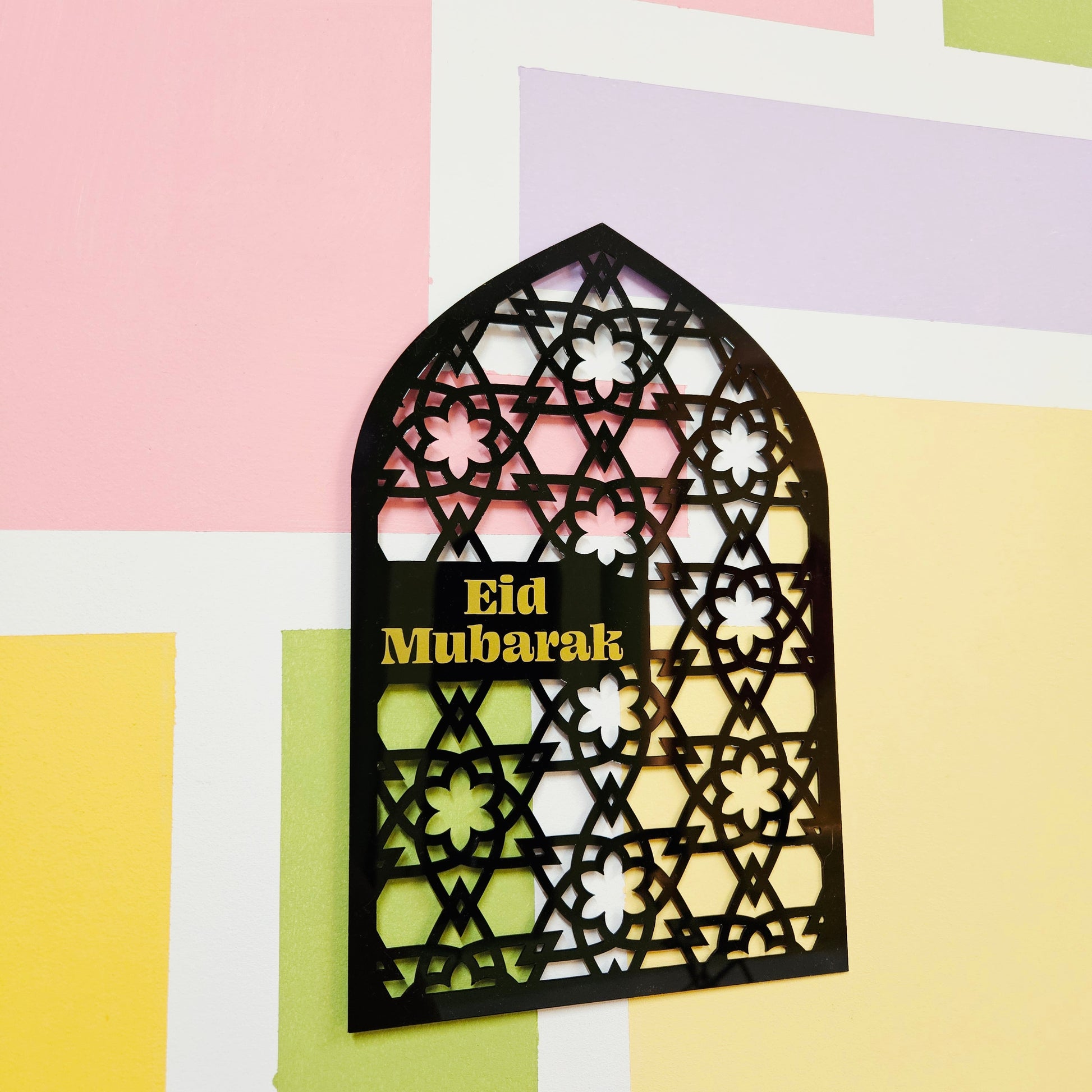 Make a statement this season with our pointed arch décor piece, featuring an intricate Islamic pattern and a thoughtful two-in-one design. One side reads RAMADAN MUBARAK, and when flipped, it reveals EID MUBARAK—allowing you to celebrate both occasions with a single, cohesive piece.