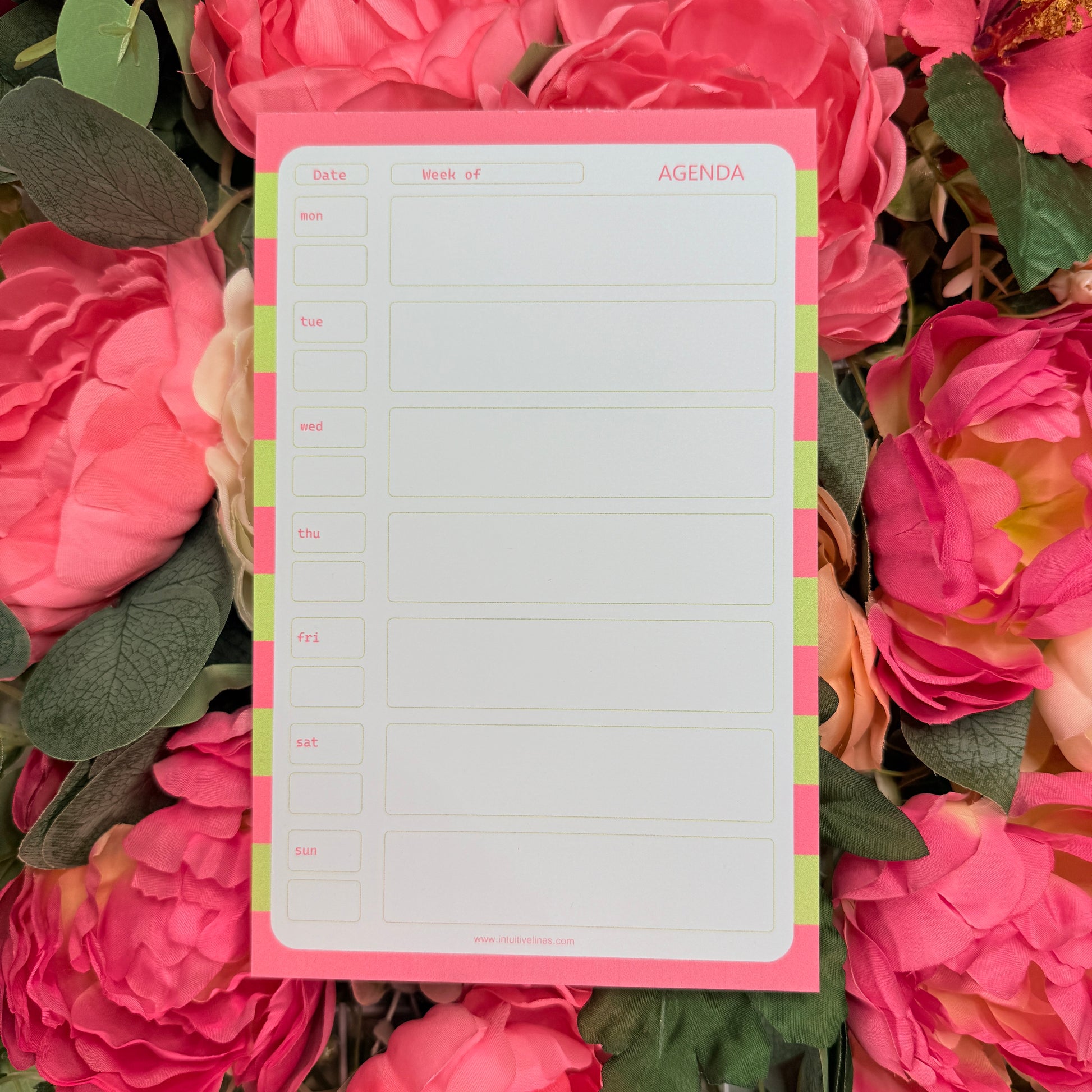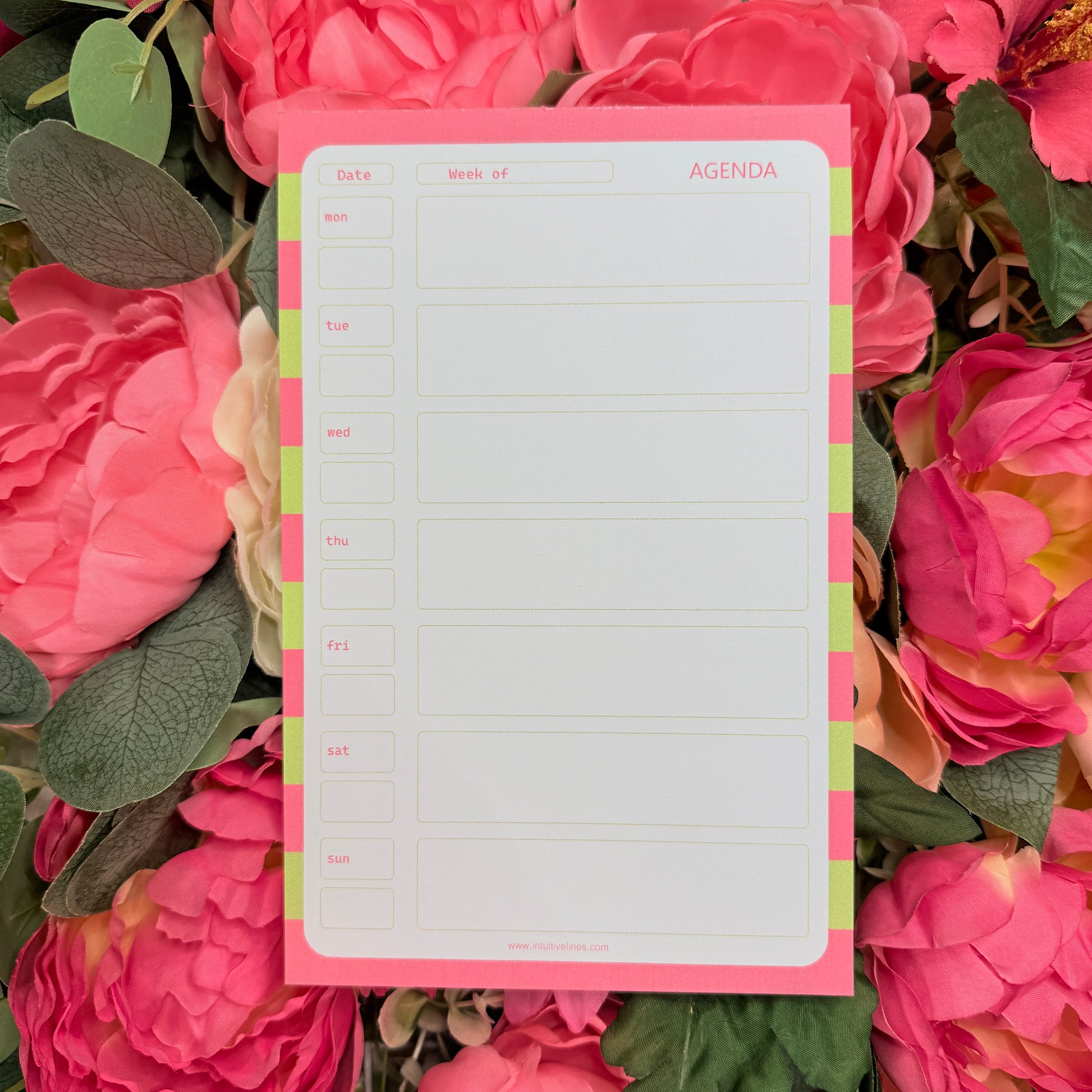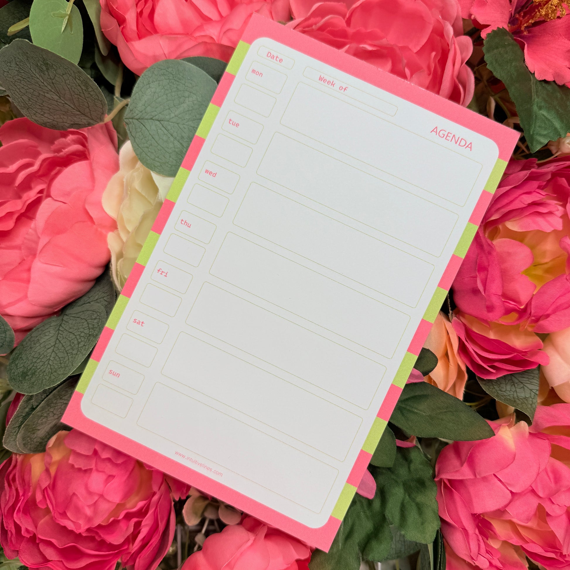 Stay on top of your week with this vibrant Weekly Agenda Pad! Featuring 50 colorful sheets, this 5x8 inch desk accessory is the perfect size to organize your thoughts and tasks without taking up too much space. Brighten your workspace and make planning fun while keeping everything in order with this cheerful and practical notepad.